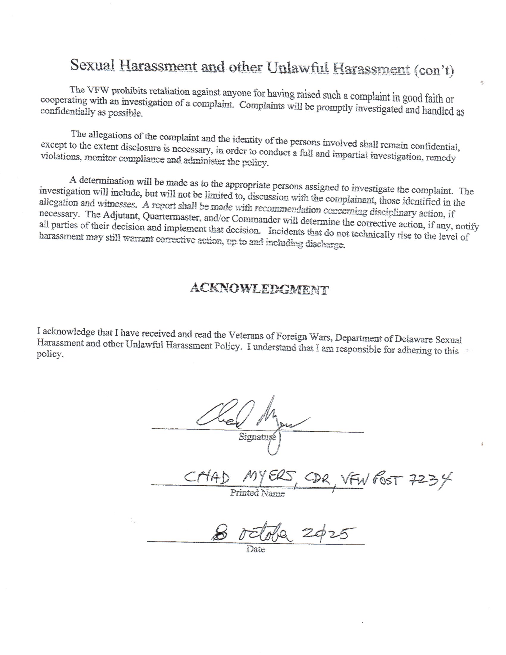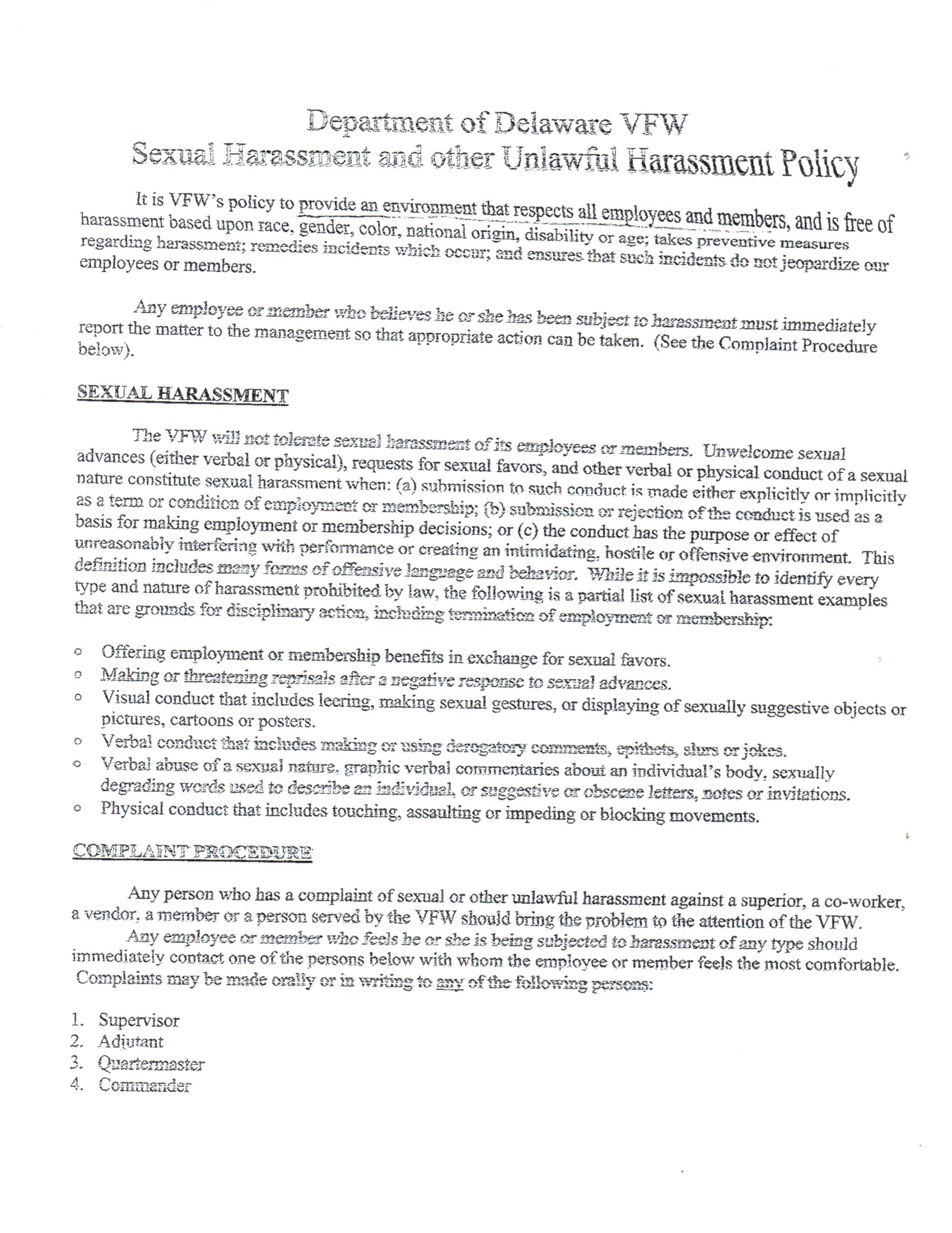 PVFW UNLAWFUL HARASSMENT POLICY |